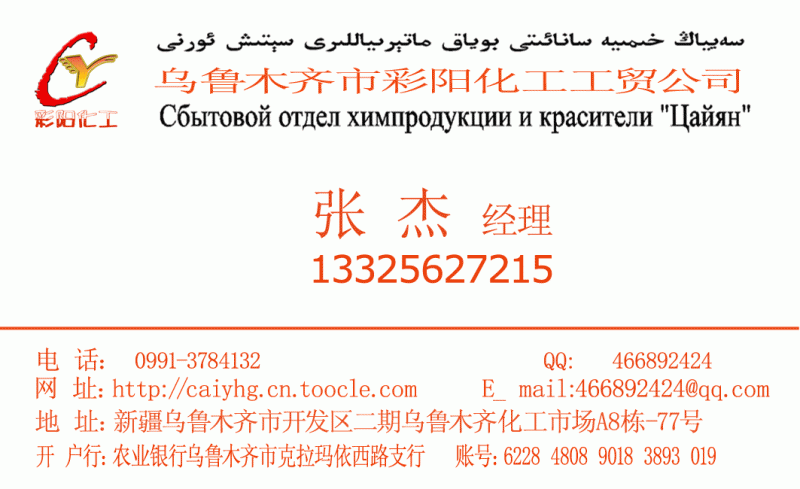 公司:乌鲁木齐市彩阳化工经营部 (未注册)