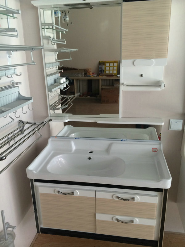 f)台面:凤凰石台面和玻璃台面用的多,这个选择看个人喜好。一般整套不锈钢浴室柜材料的配件材料(包含镜子和置物架所需要包装的部分)都采用不锈钢产品才算得上不锈钢浴室柜,要不就达不到不锈钢的经久耐用、防水防潮的效果。
