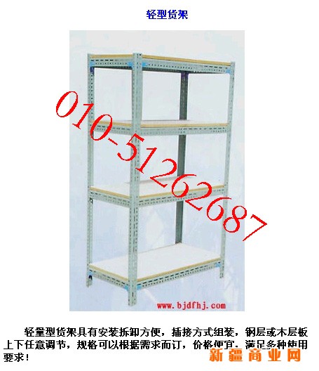 轻型货架: 轻量型货架具有安装拆卸方便,插接方式组装,钢层或木层板上下任意调节,规格可以根据需求而订,价格便宜,满足多种使用要求!本产品结构结合方便,不占场地,便于放置物件,外形美观,任意组合,用途较广。每层承重80-100公斤,尺寸可随订随做。