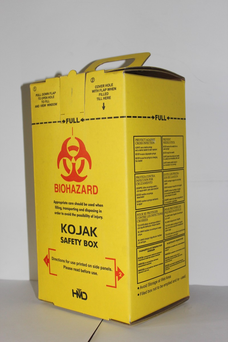 Для вмещения различных лезвий, иглы для инжекции в скальп, иглы для сшивания, ампулы, стеклышка и других острых инструментов.Коробка для острых инструментов изготовлена с применением твердых неядовитых картонов, имеет основные свойства, как стойкость к проколу, легко сжигать, использование безопасное и удобное. Коробка для острых инструментов является предметом разового использования, согласно установлению необходимо в течение 48 часов регенерироваться и полностью безопасно обжигаться щрганизацией для обработки медицинских отходов.