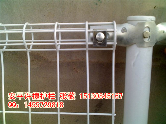 双圈护栏网是用冷拔低碳钢丝焊接成网筒状卷边与网面一体,采用镀锌进行防腐处理,具有很强的耐腐蚀性,然后进行喷、浸塑,各种颜色的喷、浸塑;最后连接附件与钢管支柱固定。经过几年的风霜雨雪,太阳的暴晒,还是光亮如新,抗紫外线能力极强。绿色的草坪在白色金属网的衬托下,显得清新整洁。