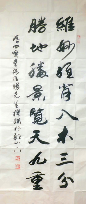 维妙维肖入木三分,胜地胜景览天九重。----为四宝堂张维胜先生撰联;
