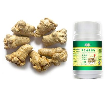 三七 味甘微苦,性温、归肝、胃经。具有良好的止血功效、显著的造血功能。