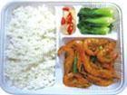 5.50元/餐 (一大荤一小荤一素菜), 米饭、汤任食。