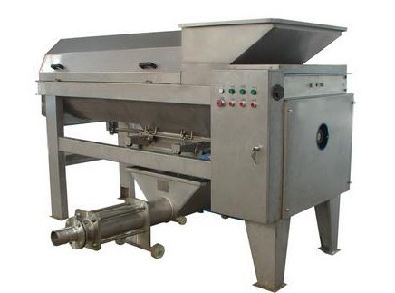 该压榨机与物料接触的材料均为优质耐酸碱不锈钢制造。该机由机架、传动系统、进料部分、榨汁部分、液压系统和护罩以及电器控制部分等组成。压榨螺旋与主轴一起旋转,物料输送螺旋套在主轴上与压榨螺旋作反向旋转,对物料的压榨力大而均匀,出渣口锥形体由夜压缸控制,调节油压可改变对物料的施压效果,从而调整出汁率,其效果因物料不同会有一定差别。